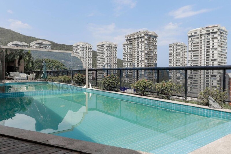 House with panoramic views of São Conrado Beach, Golf Course and Pedra da Gávea. Dead-end street with private guardhouse, easy access to the region's means of transportation. The house comprises of four floors, with an elevator. The social area is divided into large living rooms with a balcony, dining room, pantry and kitchen. On the intimate floor, there are seven suites. The outdoor area has leisure spaces: swimming pool, sauna and winter garden with a bar. There are also full dependencies for staff. It has parking spaces for five cars.