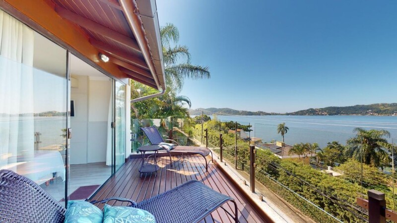 Luxury house with panoramic and permanent views of Lagoa da Conceição. Have you ever imagined living in a house with a view from every room of the charming Lagoa da Conceição? In this newly renovated house with a modern industrial style, you will have, in addition to all the comfort and modernity that the house offers, a panoramic view of Lagoa da Conceição from all areas of the house, you will be able to appreciate the coming and going of the little boats, the sailing of the kitesurfers and much more. beautiful sunrise on the island and it's not just during the day, at night the traditional Avenida das Rendeiras reflects its lights like a watercolor on the waters of the lagoon and on nights with a full moon the show is a case in point. This whole scenario is part of and is present in the daily life of the resident of this house, as you can see this view wherever you go, even from the shower! The house was recently renovated and fully modernized and has 3 floors, 3 suites with balcony and deck, 4 bathrooms in total, living room with high ceilings, balcony/terrace in beach boho style, gourmet kitchen with island and fully equipped, support for guests, laundry, garage and hobby box with shower in the garage. The house is fully furnished from the furniture, smart tv, minibar and air conditioning (hot and cold) in all rooms, wi-fi cabling to all rooms in the house, electronic lock, surveillance cameras monitored by cell phone, washing and drying, appliances in general the house is complete, ready to move in. Excellent location, at the beginning of Canto dos Araçás, integrated with the nature and tranquility that this corner has and at the same time a few minutes walk from the busy and friendly center of the lagoon and Avenida das Rendeiras with its new bike path by the sea. Also close to the main beaches of the island such as Joaquina and Praia Mole, which are 10 minutes by car and 15 minutes from Novo Campeche and the city center. House regularized and financeable with public deed. Land Area: 256m2 Built Area: 250m2.