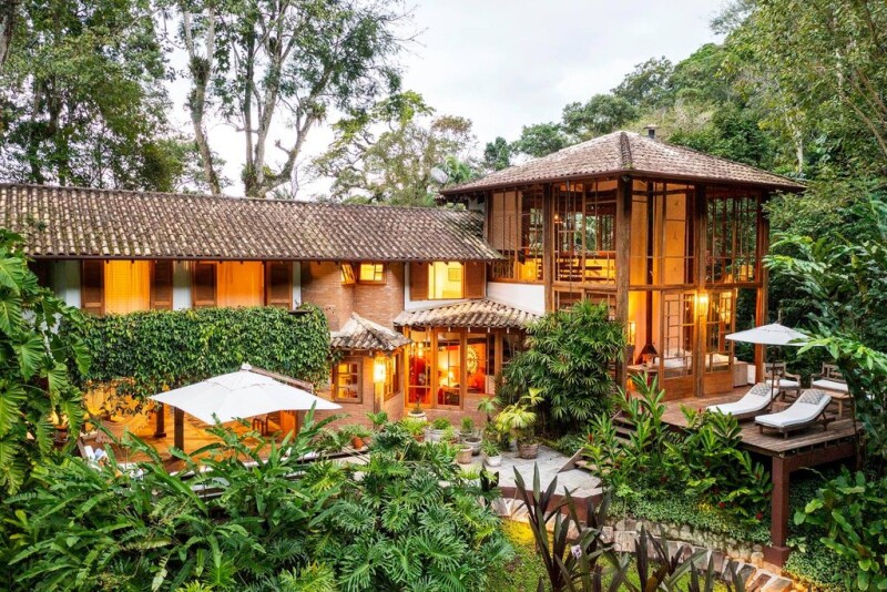 Located at the end of a closed street, very safe, 10 minutes from the south side of Praia de Maresias, close to the center with bars and restaurants. Light house with many openings in glass and wood, Gui Mattos project. Surrounded by landscaping by Gil Fialho. A river cuts through the property, it was dammed forming a natural pool. In the main house, integrated environments provide greater coexistence, facing nature. In the intimate area, there are three suites, as the master is the junction of two and an office overlooking the sea. There is a compact secondary house with two bedrooms, a bathroom and integrated living room/kitchen. It has a caretaker's house, who lives there. Parking for six cars and storage for bicycles and beach equipment.