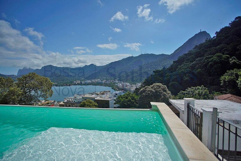 House with a breathtaking view of Rodrigo de Freitas Lagoon and the Christ the Redeemer monument. It was constructed using special wood, comprising three floors, with an elevator and high garden walls. On the first floor there is an outdoor terrace that sits on sloping ground, with São Tomé quartzite stone floors, a French-technology infinity edge pool and an office space. The second floor comprises an L-shaped living area with good quality woodwork, a dining room and a solid wood bar, as well as a wide balcony and a kitchen with a breakfast nook and plenty of cabinets. One floor below is the sleeping area, which has four bedrooms, three of which have private bathrooms and two of which have a common balcony with quartzite stone floors. Another floor below there is a gym room, and below that there is an indoor French-technology swimming pool, a game room, a steam room and a dressing room. Lastly, the house has a spacious indoor garage with room for four cars.