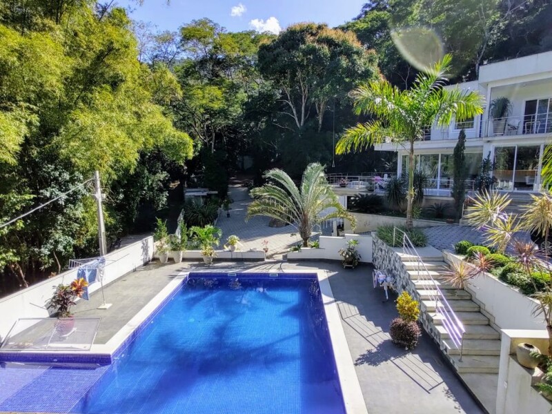Modern design with top-of-the-line workmanship, designed down to the smallest detail. It has over 1000 m² of built area with great elegance and lightness. Open, bright spaces embrace the outdoor area, framed by its floor-to-ceiling windows. Swimming pool with water from the property's own spring and gourmet space surrounded by impeccable landscaping; Total area of 150,000 m² (all in forest), 05 large suites, office, 04 storage rooms, 05 parking spaces, sauna, fully equipped gourmet area with accommodations for visitors, totally independent, kennel and water from the spring.