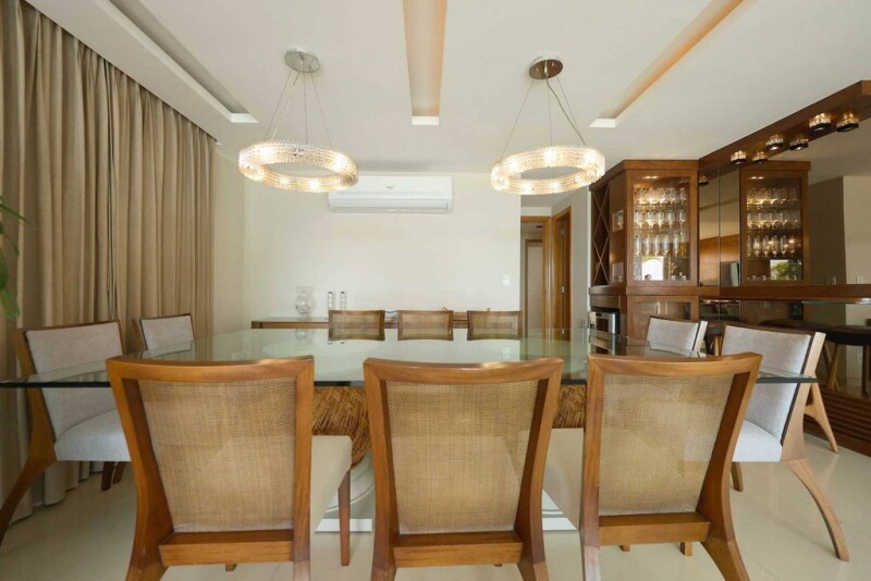 Magnificent penthouse located on Av. Lúcio Costa, in the prestigious Praia do Pepê. Set in a modern corner building with full leisure infrastructure, this penthouse offers an unparalleled experience for you and your family, featuring adult and children's pools, steam sauna, party room, and a support kitchen. On the first floor, sophistication and good taste are present in every detail, from the spacious and airy living room with a large balcony facing the ocean, to the high-ceilinged dining room with an impressive staircase. The integrated kitchen and breakfast area are equipped with top-of-the-line custom cabinetry, adding to the cinematic atmosphere of this penthouse. The five suites are fully equipped with new, high-quality wardrobes. On the second floor, the service area is spacious and includes a gourmet room, barbecue area, and bathroom. The large terrace offers a spectacular 180-degree view, encompassing the ocean, side, and rear. Additionally, the property includes full maid's quarters and five underground parking spaces.