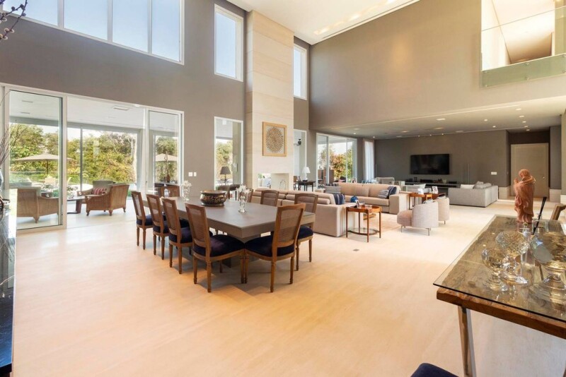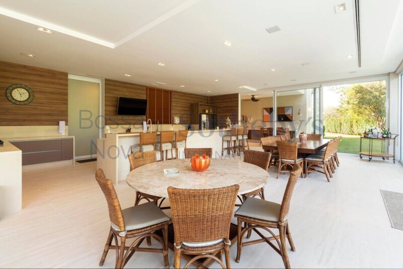 House with a modern style, designed by architect Rogério Perez, with high ceilings in the spacious living room with three environments, dining room, home theater, living room with fireplace, which also serves the terrace for three environments, games room, gourmet space complete with another dining room, equipped gourmet countertop, barbecue and pizza oven. All facing the garden, made by the landscape designer Maria D´Orey, and the heated pool and hot tub. Still on this ground floor, we have the lavatory and three suites, including the master, which has an intimate sitting room and large closet. The Spa with another heated pool, sauna and two dressing rooms are also attached to the gourmet space. On the top floor, there are four suites with planned joinery and air conditioning in all. There is also a mini pantry and a second home theater with a terrace and views.