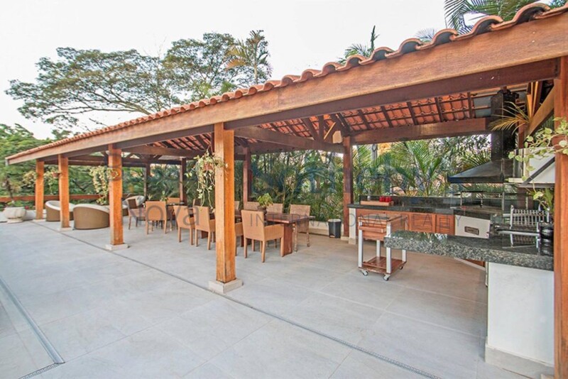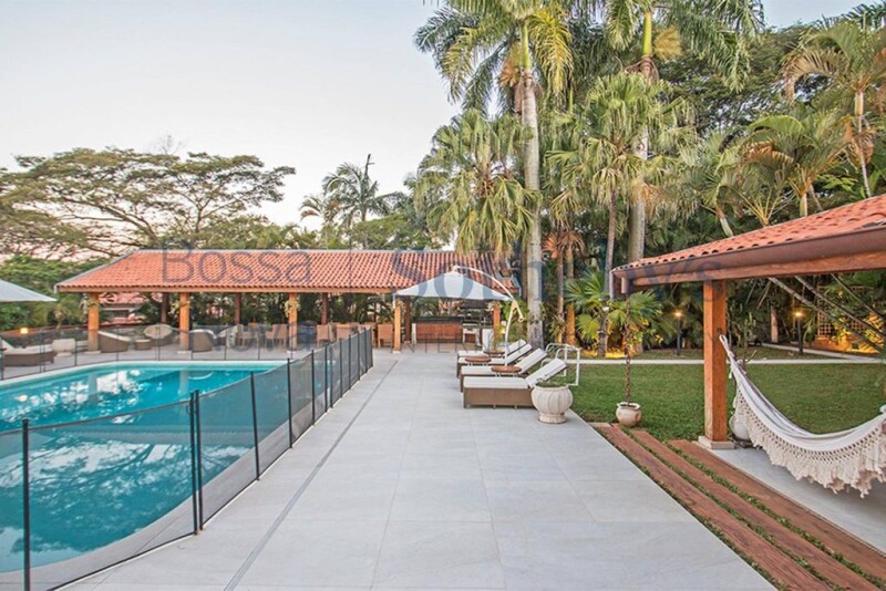 Contemporary-style house designed by a renowned architect. The living area has double ceilings and overhead natural lighting, comprising a sitting room with a fireplace, a dining room, a mezzanine area, a modern and practical kitchen, a toy room and a well-ventilated service area. In the sleeping area there are seven bedrooms, all with en-suite bathrooms that face a private garden, in addition to a guest bedroom. The master bedroom also has a walk-in closet. Outside, there is a swimming pool and a barbecue area, as well as dining and living spaces. In addition, there is a half bath, a gym, a game room, a storage room, parking for bicycles and motorbikes, a playground and a technical room. All woodwork is of the highest quality. The gated community is very exclusive, offering 24-hour security, multi-sports courts, a soccer field, a playground and an outdoor gym.