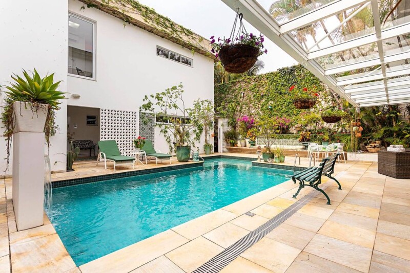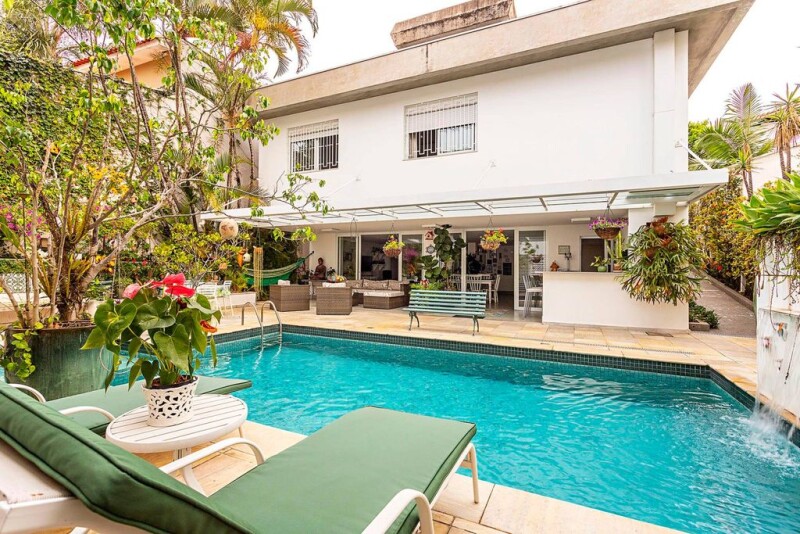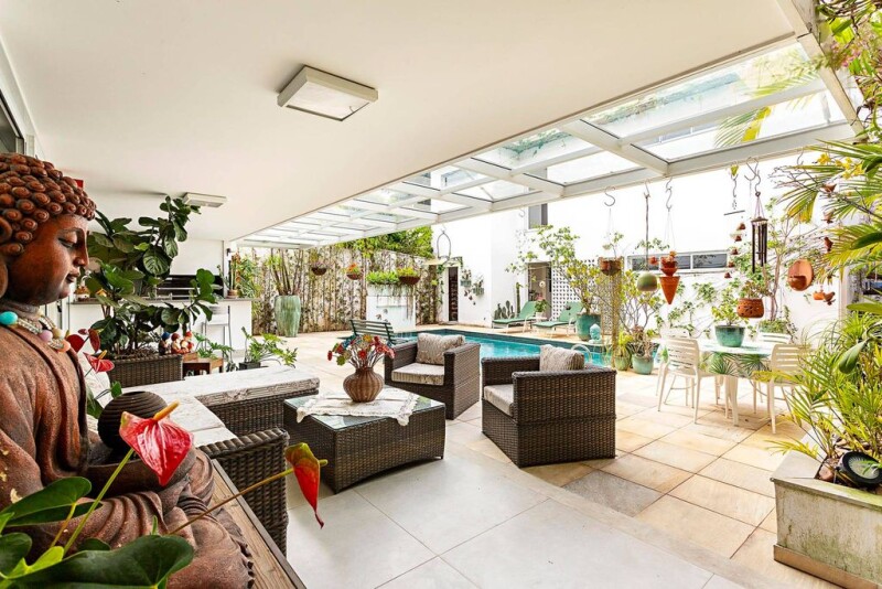 Single-story house with a separate small building that provides an ideal environment for a home office or studio. It is located close to a pocket park and schools, in a prime position in the neighborhood. The building has spacious and airy rooms, with air conditioning and noise-reducing windows. The living area features three rooms, with a dining room integrated into the kitchen, which has a central counter island. In the sleeping area there are four bedrooms with en-suite bathrooms, wooden floors and windows with blackout shutters. The garden has clean and elegant landscaping and a swimming pool heated by solar panels and with a water cascade. The house also has a party room, a games room and a kitchen with barbecue grill.