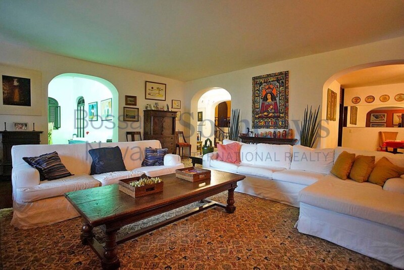 This property in Rio de Janeiro comprises two separate houses in a single building, one of which can be divided into two homes; therefore, there are three full residences in total. The first one is a five-storey house, distributed into one upper floor, one ground floor and three underground levels. On the bottom underground floor there is a basement. One floor above, there is a swimming pool, a covered terrace with a barbecue grill and a pizza oven, a bar area, a games room, a TV room, two full bathrooms, and a steam room with a shower. Above that there is the service area, with two laundry sinks, three employee bedrooms and two bathrooms, a laundry room and the access that leads to the second house. On the ground floor, which is the one accessible from the street, comprises the entrance hall and the garage, a half bath, a study, a living area, which has a fireplace, a TV room with a 12-meter ceiling, a dining room, a crockery closet, a dart board, a kitchen with a breakfast nook and a pantry, as well as a dog kennel and a vegetable garden outside. The upper and final floor has four bedrooms, all en-suite and with built-in wardrobes; one of the bedrooms has a balcony, one has a double-vanity bathroom, one has a 12-meter ceiling, and the last one has a walk-in closet. The second house is accessed from the first underground level of the first house, but there is the possibility of building an external separate entrance. The first underground floor comprises two bedrooms with en-suite bathrooms, one of which has a walk-in closet, and two extra bedrooms that share a common bathroom. All four bedrooms have built-in wardrobes and direct access to the outdoor area where the swimming pool is. On the second underground floor there is a half bath, a living area with a fireplace and a 12-meter ceiling, a dining room, a crockery closet, a kitchen with a breakfast nook, and a service area, with two laundry sinks, two employee bedrooms, one bathroom, and the service entrance. Finally, the ground level comprises the garage, the main entrance hall, a wide living area with a veranda and a full bathroom, which can be used as a bedroom.