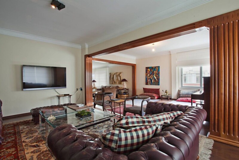 This building is highly wanted by its architecture and its location. Luminous ambiances with a double height ceiling and big windows create a wide, pleasant apartment. The living area has hardwood floors and a charming winter garden. Its original project was modified and now holds four suites.