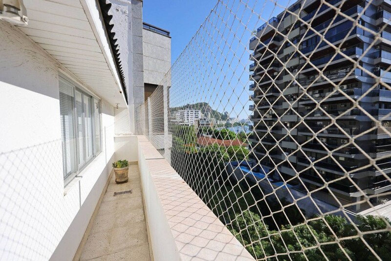 Bright and airy, this duplex penthouse in Fonte da Saudade offers spacious and well-distributed interiors. On the first floor, the social area features living and dining rooms, along with a large kitchen integrated with the service area and staff quarters. The private area includes three bedrooms, one of which is a master suite, as well as a social bathroom. The second floor boasts a mezzanine-style living area, an office, a bathroom, and a terrace equipped with a barbecue grill, plus space for reinstalling a pool. The property includes two garage spaces, ensuring practicality and comfort in one of the city's most sought-after locations.