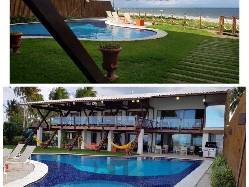 House in Tamandaré with 08 suites divided into 2 floors with external support house for caretaker and employee. GROUND TERRACE Garden terrace and pool 1a. LIVING ROOM (ground floor): Living room with 12 seater sofa with bar, 9 wing intimate round dining table with 8 chairs acclimatized with 2 Splits. Outside area with 14-seater wooden table with Massaranduba wood pergola. Independent staircase for home theater on the upper floor. 2nd GROUND ROOM: Intimate living room, game table room facing the air-conditioned cellar, dining room with 10 chairs and staircase to the superior rooms. Hallway with toilet, Suite 01 with double king and Suite 02 with king and single bed. TOP FLOOR: Suite 1) 2 pull-out beds = 4 people Suite 2) 1 Single bed + 2 pull-out beds = 5 people Suite 3) Child's room Suite 4) Double King bed. Large home theater with bathroom and independent access to the ground floor Large balcony TOP FLOOR WITH EXTERNAL ACCESS with 02 SUITES: Suite 07) 03 single beds + 01 bunk Suite 08) 01 double bed.