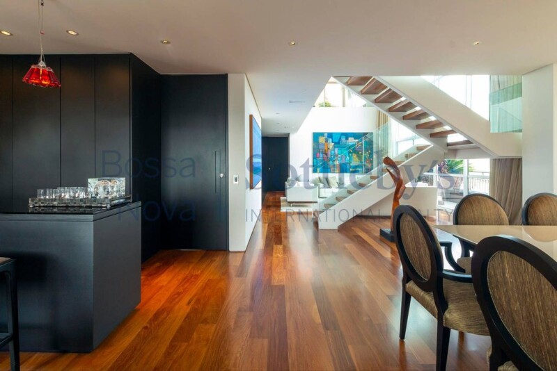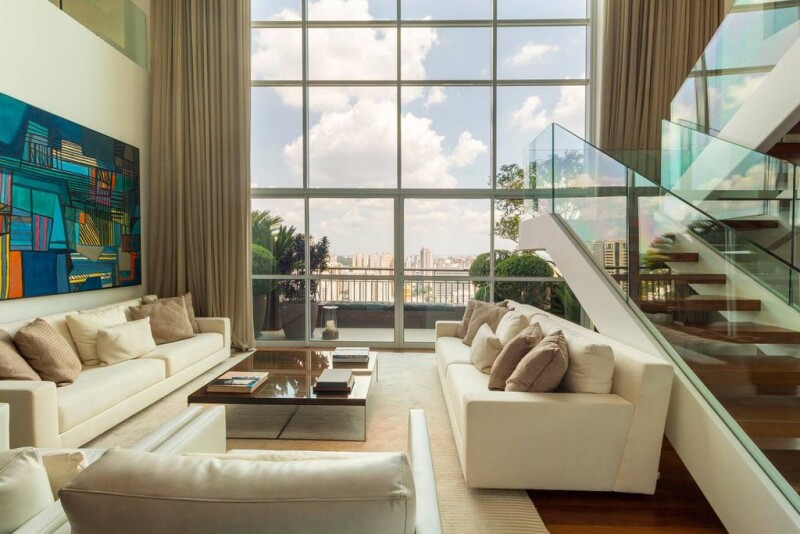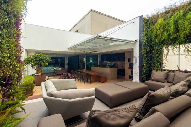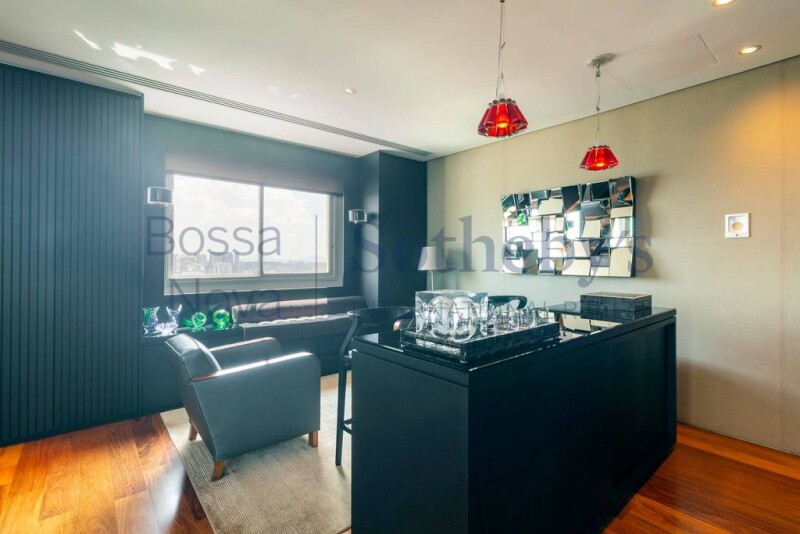 Penthouse in Campo Belo, designed by architect Alessandra Pires, from A1 Arquitetura. The residence has several modern resources, such as a lighting project created by Mingrone, a Russian eye for works of art, armored doors for social entrance and service, curtains, air conditioning, automated lighting and ambient sound, Hitachi central air conditioning, professional high speed internet cabling and quality antennas, home theater with grounding and dedicated electrical circuit. In addition, the acoustic project was developed by the specialized company Giner, with sound regulation and 4K projection by a THX specialist, George Lucas. The BW speakers, used in the Abbey Road studio, were also installed in the residence. The penthouse also has a retractable ceiling lift for TV in the Family Room, doors from the Panorama gourmet space imported from Portugal, in addition to thermal and acoustic comfort. The Italian porcelain floor was used in the gourmet space, on the verandas and in the guest bathroom on the upper floor. For the kitchen, Ornare cabinets and a Kitchens kitchen with refrigerators, stove, dishwasher, microwave and Viking range hood were chosen, in addition to an Engefood professional electric oven. Toto brand Japanese toilets were installed in the residence, along with French toilet valves in the bathrooms. German showers were used in the couple's bathrooms in the master suite, which has a soundproof window and quadruple glass. The residence even has a Life Fitness gym and an automated vertical garden, making it even more special.
