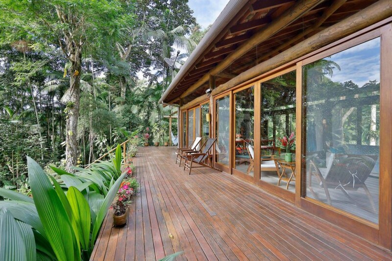 House in the countryside in the middle of a forested area, with a small river, a natural spring and fruit trees. The property is located in a preserved valley ten minutes from Paraty, which was recently declared a world heritage site because of its culture and biodiversity. The property has a total of three buildings with a balinese style, a rustic log structure, burnt cement flooring and wood panel ceiling. The main house comprises a wide living area surrounded by a veranda built on a wide wooden deck, an open-plan kitchen, a guest bath and a bedroom. On the second floor, which is accessed by a U-shaped wooden staircase, there is a master bedroom with an en-suite bathroom, a balcony and a walk-in closet. The second building is a cottage used as a guest house, comprising a living room with a veranda, an open-plan kitchen, a futon and a bathroom. The third building is a small house with a living area, a kitchen with a wood burning stove, a bedroom and a bathroom. The property has fiber internet connection and covered parking for two cars. The outdoor area has a dog kennel, several fruit trees and a vegetable garden. The showers are heated by solar energy and the water is provided by the local spring. Price upon request.