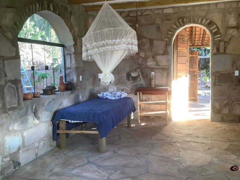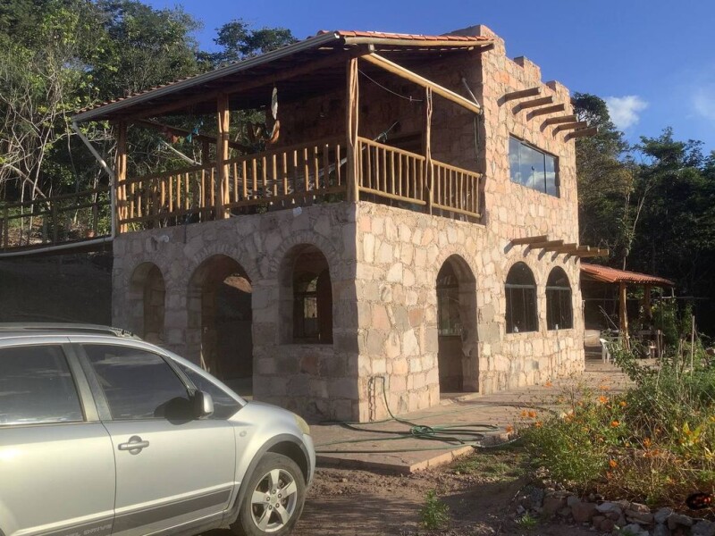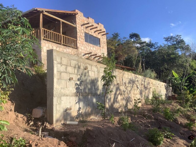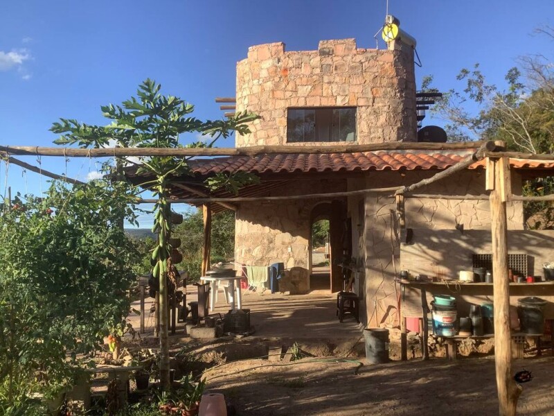 Detailed Description: This unique house/castle was finished in Feb, 2022 and is located in Lençois, in the famous and stunning Chapada Diamantina. The rock style used is found only in this region of Brazil and is due to the locals who are rock mason masters leftover from the diamond hunting days. The walls and floors in the main 2 story house are all stones from a local quarry and are infused with crystals, hence the name. The dimensions are 13 meters by 6 meters on both stories and the 2nd story roof is a deck with amazing views and incredible sunsets! The back porch area is 6×6 meters and has a nice bathroom and shower that match the rock style of the main house and there is also a storage room which houses tools and the solar systems battery and inverter. A rocket stove and fire area to cook are in the back corner of the porch and there is no shortage of firewood! Giant Eucalyptus poles were used to help hold up the first and second floors and add nice contrast to the rocks. Two custom made spiral staircases connect it all. There is even a bridge that goes from the landscape to the 2nd floor balcony and all the wood is eucalyptus which is super hardwood and termite resistant. There is no worry about termites or mold in this house and is super easy to clean and maintain. One can use the garden house to literally wash inside and out as its all rock. Locally made ceramic tiles make up the balcony and back porch roof to add to the local style. BIG custom made glass windows give the upstairs the feeling of being outside and the front wall is almost entirely glass looking out on the balcony and landscape. Downstairs has 2 antique castle doors that were r The house and landscape were designed to be an ideal self sufficient property. There is a state of the art solar electrical system and solar hot water. The swimming pond is all natural spring fed water that uses plants and circulation to keep it clean. It also doubles as a 27,000 liter back up water tank and could be used to raise fish and shrimp if desired. It has its own separate solar panels that run the pump. The landscape includes over 60 fruit trees and 30 banana clumps. There are also 12 beautiful garden beds besides the house. The entire landscape and gardens are set up with drip irrigation or can be hand watered. The gem of the property is all the water comes from a spring that flows via gravity to multiple tanks on the property. There is plenty of room on the lot to build a guest house or spare cabin. The property is a gated community that is 100 hectares. Each member owns their own lot but gets to share the resources and security of the entire piece. This lot is approximately 1 hectare. The property borders the National Park Chapada Diamante and we have 1km of a huge river that flows from the park as a border. Hundreds of swimming holes and waterfalls are all within hiking on the land. The land is also in its own protected zone known as APA which will keep it wild and natural. The Brazilian government is also trying to make the entire area a UNESCO World Heritage site as well. The national park is stunning and full of 1000’s of kilometers of back country trails and is famous for its waterfalls, rock climbing and crystals. Lencois is the closest town and is also a gem. It’s a huge tourist attraction due to its Portuguese style rock architecture and base to the park. Lively restaurants and music grace the town every nite. The surrounding are is mainly small farms and old time rural people who work hard and have strong family values. The weather is is hot and sunny year round with 3 different ecosystems converging here making it one of the most unique areas of Brazil. The house can also generate money as a rental to all the tourist who come to Lencois. $100 to $150/nite is possible and there is always demand. There will only be about 10 members total on this property and all are into the chill nature life. Members share simple cost of maintaining road, water and a local caretaker who runs the place and acts as guard. Landscape trees: Coconut, Avocado, Citrus, Figs, Mulberry, Guava, Apple, Peach, Pear, Pomegranate, Mango, Jack Fruit, Longan, Rambutan, Durian, Mangosteen, Jacoticaba, Cashew, Cacao, Cherimoya, Bread Fruit, Guanabana, Papaya and Bananas. In summary, this property is ideal for those that love deep nature and want to live away from the bustle, noise and pollution of cities. It’s a great homestead in case times get crazy and one needs a safe location to go with their own food and water. It can also be used to generate a good income as a rental if not living there. The cost of living in Brazil is super cheap and the markets are full of local foods. Additional Information about Lençois and Surroundings: Official and Municipal Information: https://www.lencois.ba.gov.br/.