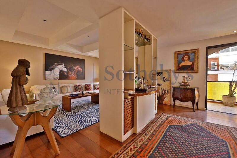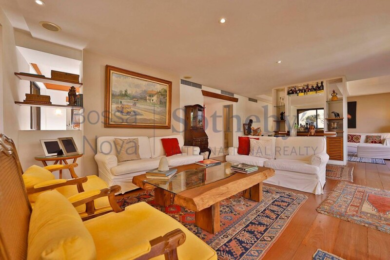 Apartment in an exclusive building with 24-hour doorman service close to Fonte da Saudade street. Well-lit and ventilated, with a circular floor plan comprising a main room with three living areas and access to a large balcony, as well as a half bath, a guest bathroom, three bedrooms, one of them with an en-suite bathroom, a kitchen with a support room, and a service area with employee facilities. The whole apartment has plenty of cabinets and wardrobes and the bathroom has good natural ventilation. The building offers a parking space in the garage.