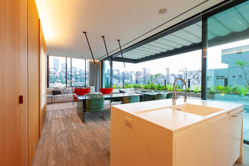 Recently renovated penthouse by Triptyque Architecture Office, with a contemporary design, impeccable finishes and woodwork. Very little use, well maintained, two deposits for the four parking spaces. Overlooking Alto de Pinheiros and Vila Beatriz, in a quiet and privileged location. Building signed by Gui Mattos with lap pool for leisure. On the first floor, a spacious living room and two suites, the third of which is reversible and closed by wooden panels when in use, in addition to an extensive area of closets in a private room. On the upper floor there is a bathroom, another living room full of natural light, a dining room with a gourmet kitchen. The terrace integrates with these environments and has a retractable roof. Lighting design, ambient sound and central air conditioning linked to automation, bring comfort and sophistication to this property.