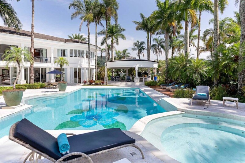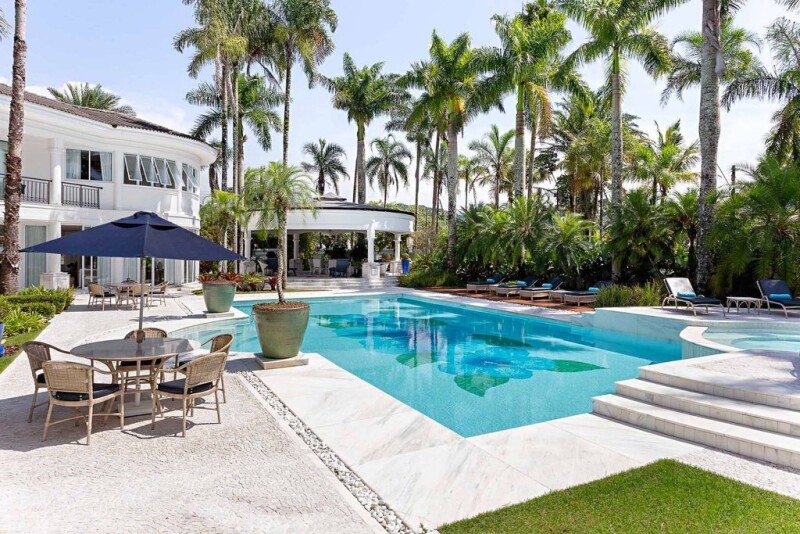 This mansion is located in the Jardim Acapulco gated community, in front of a square, near Pernambuco Beach. Designed and executed by architect Rogério Perez, the award-winning architecture and top-tier construction create well-distributed spaces with a fluid, intelligent design, offering total integration and a lush garden with palm trees. In addition to the main house, other structures are spread across the large plot, including a poolside bungalow, bar and game room, gym area, zen space, spa area with a retractable roof, a heated pool, one of the jacuzzis, sauna, and lounge. The house also features an automated home theater, a wine cellar for 350 bottles, and a sound, lighting, and air conditioning system throughout. The leisure area includes a soccer field, a gourmet area with a barbecue, griddle, and draft beer system, an outdoor pool, two jacuzzis, and a party room. There's also a caretaker's house and four covered parking spaces. The property is being sold fully furnished. The Jardim Acapulco subdivision spans approximately 4 million square meters, with wide streets, avenues, and squares, surrounded by stunning landscaping that blends with the natural greenery. Known for its luxurious mansions featuring bold architectural styles ranging from Mediterranean to neoclassical, the community offers round-the-clock security with a gated entrance and motorized surveillance, a private club with various sports and social activities, including beach tennis, a mobile ICU service, a minimarket, shopping center, and transportation to the beach with an exclusive beach club.