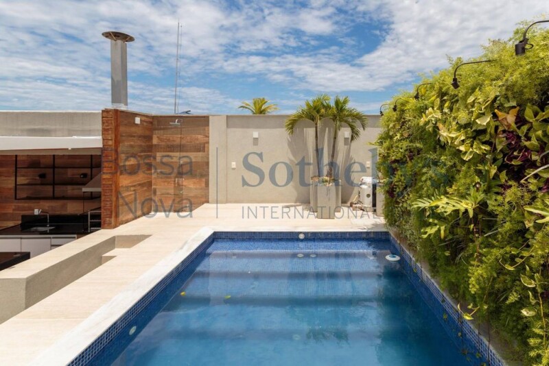 Impressive duplex penthouse on Praia do Pepê, with views of the sea and Morro Dois Irmãos. The first floor has a large living area with two rooms, namely a dining room and a living room with a home theater setup, as well as a half bath and a spacious balcony overlooking the beach in Barra da Tijuca. In the sleeping area there are four bedrooms with en-suite bathrooms and top-of-the-line wardrobes, one of which is a master bedroom with a walk-in closet. The service part comprises a breakfast room, a kitchen, a laundry area and full employee facilities. On the second floor there is an entertainment area with a balcony and a guest bathroom, as well as a heated swimming pool, a steam room, a barbecue grill and a terrace with views of Morro Dois Irmãos and the beach. The building offers four parking spaces in the garage and leisure facilities such as a swimming pool, a steam room, a barbecue grill and a party hall, in addition to having 24-hour concierge and security services.