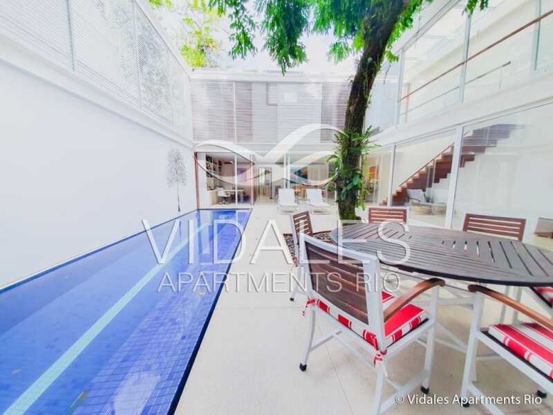 CLAUDIO BERARDES PROJECT IN GAVEA! Wonderful luxury house in Rua Exclusiva da Gávea, with a swimming pool that runs inside the room, with a beautiful internal garden. Beautiful entrance, landscaped, with a large dining room, office, living room with a beautiful view of the green, outdoor area, a toilet, Kitchens pantry. It has a beautiful staircase to access the second floor where we find a hall, a TV room, four large suites, the master suite with a beautiful bathroom, a view of the garden and a good closet. The house's design makes the most of lighting with large ceiling-to-floor windows in all areas Two maid's quarters, laundry area and four parking spaces. vidalesapartmentsrio.com.