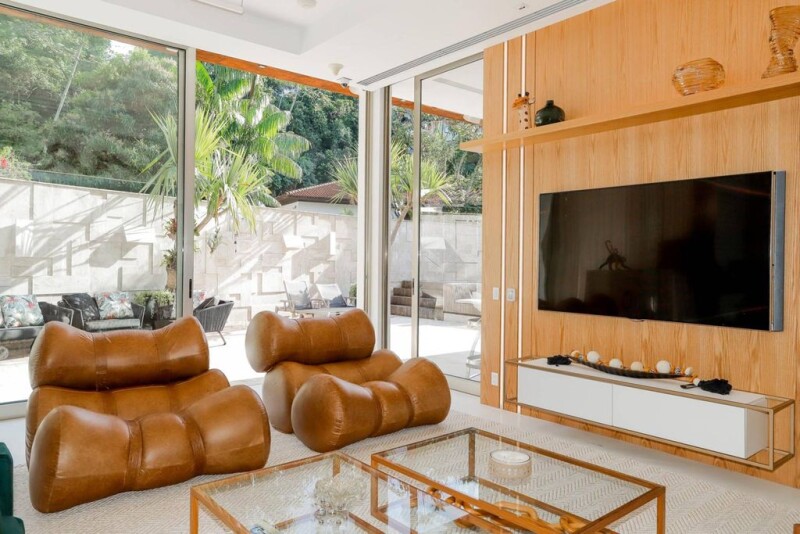 Located in a strictly residential area and surrounded by greenery, this house has a nice view of Morro Dois Irmãos. It has a modern and clean design by Jairo de Sender, with lighting design by Maneco Quinderé and rooms that are distributed in a harmonious way. On the first floor, there is a living area for two rooms integrated with the outdoor area, where there is a swimming pool, a sauna and a gourmet area. There also is a half bath, a kitchen and facilities for two employees. In the basement there is a home cinema, a toy library, a kitchenette and two bathrooms. The second floor features the sleeping area, with three bedrooms and one master bedroom with a closet, His and Her bathrooms, an office and a balcony. On the third floor there is an air-conditioned gym, a boxing ring with waterproof floor, a hot tub for eight people and a terrace. The street is closed with a guardhouse and 24-hour security.