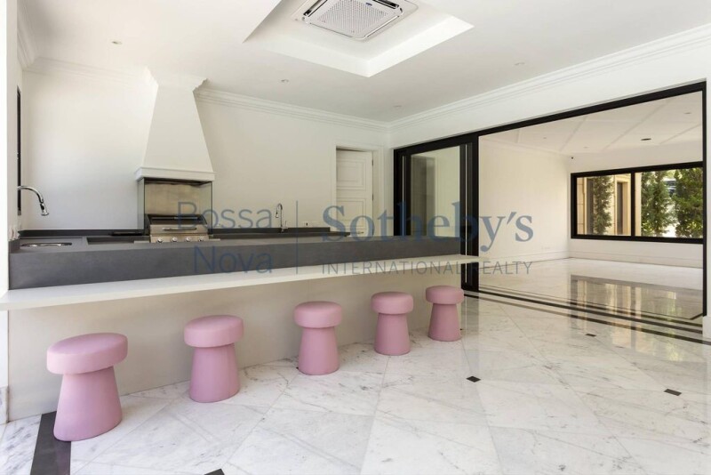 Distinctive house of 1100 m² with neoclassical and imposing project by architect Cristiano Camargo. The decorator Virgínia Costa painted the marbles with incredible designs and used a differentiated design for the house's ironwork, with details in Lotus flower. The large living room with double-height ceilings, together with the gourmet space facing the outdoor area with swimming pool, expose the amplitude of the spaces. The garden surrounds the entire house in European style, designed by Sara Salomone. In the intimate area, there are six suites full of closets and with quality carpentry, and an office with a bathroom that can be the seventh suite. Some rooms face the pool area and have a wonderful view of the lake and the garden. The whole house excels in accessibility in all areas, even inside the stalls and an elevator. The bathrooms have imported metals, crystal and mirrors. The house has automation for sound, image, and a highlight for the night lighting of the garden and the pool. It has a wine cellar, spa with dry and wet sauna and swimming pool, and a winter garden with a jaboticaba tree. Parking space for eight cars.