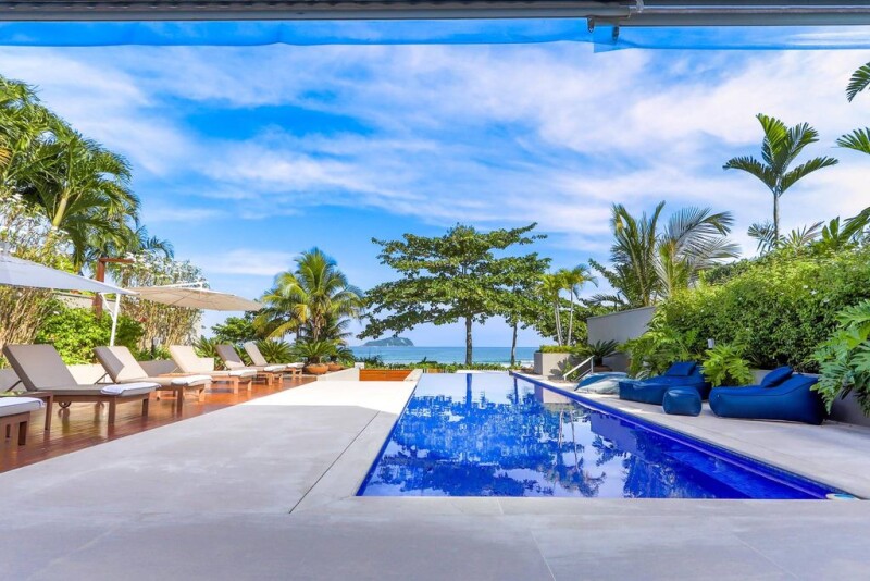 This exceptional beachfront house on Praia da Baleia offers a perfect blend of modern architecture and robust construction. The property features a welcoming entrance hall, a powder room, a spacious living area, a dining room, a kitchen, a service area, and staff quarters. The garden, located at the back and side of the house, includes a pool with a breathtaking ocean view. The private area consists of five suites, with the master suite being particularly spacious and equipped with two walk-in closets and his-and-hers bathrooms. The basement is well-appointed with treated water cisterns, a sauna with a full bathroom, a storage room, and a driver's lounge. Additionally, the property includes five individual parking spaces, with the capacity to accommodate more cars temporarily for entertaining friends and family.