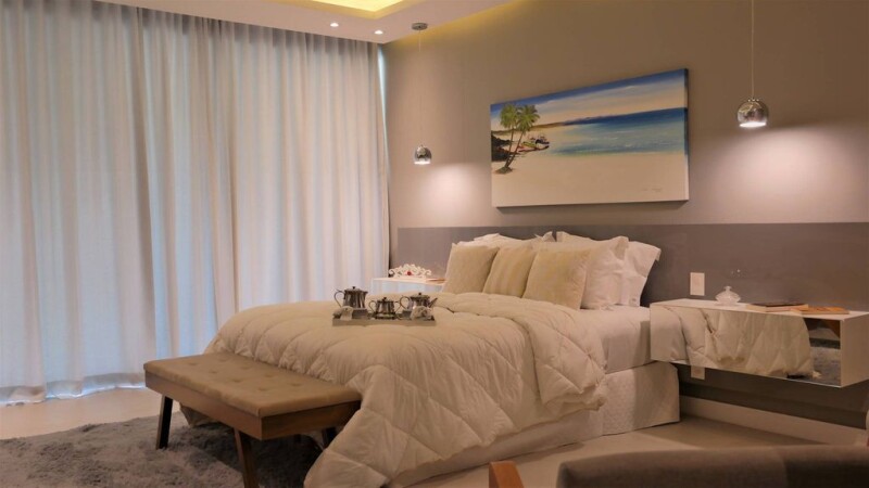 The design of the façade of this beautiful house evokes sophistication and nautical vibes. The white surfaces end in reflecting pools, and the impeccable wood finishes are found throughout the rooms, including the ceilings. The design of the house emphasizes the concept of freedom, where people can enjoy this feeling from inside, viewing the beauty of the local area and the region. Large glass spans were created to enhance and better enjoy this feeling of freedom. The 900 m² of construction is divided into 6 suites, a game room, a TV room, as well as a fitness area, sauna, a brazier by the canal and a heated whirlpool in the outdoor area. Of the 6 suites, 4 have views of the canal and 2 of the mountains, 5 of which have integrated closets and 4 have a jacuzzi. The house has high-speed internet and excellent quality infrastructure. Leisure is guaranteed by 2 stand up paddle boards, table football and badminton. The Portobello Resort & Safári condominium is safe, integrated into the local nature and offers many alternatives for entertainment and gastronomy.