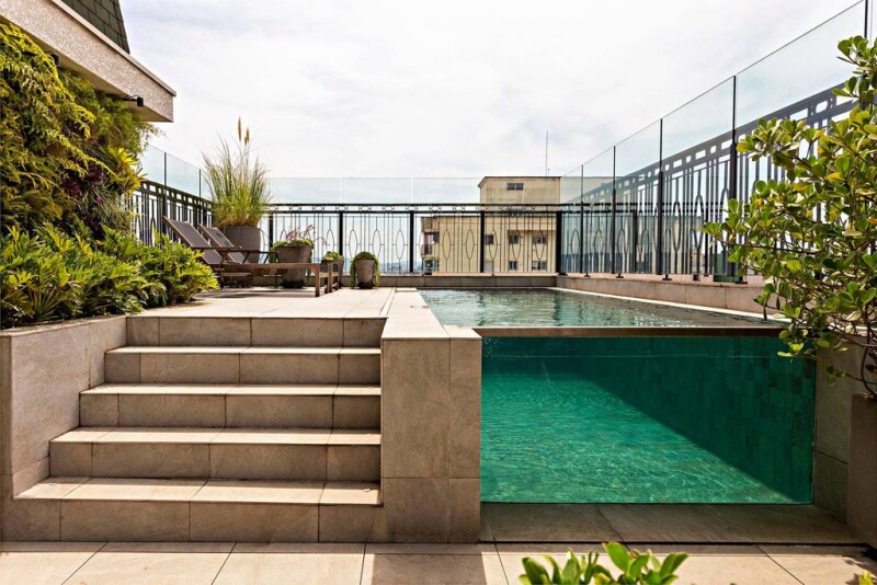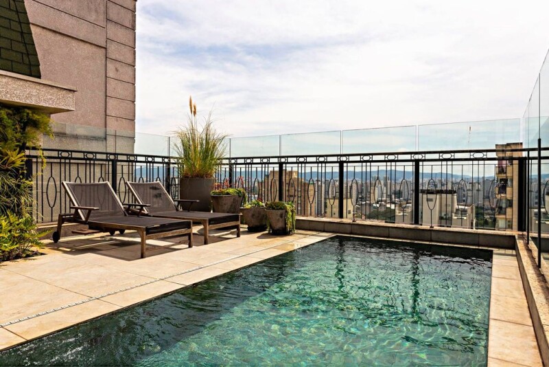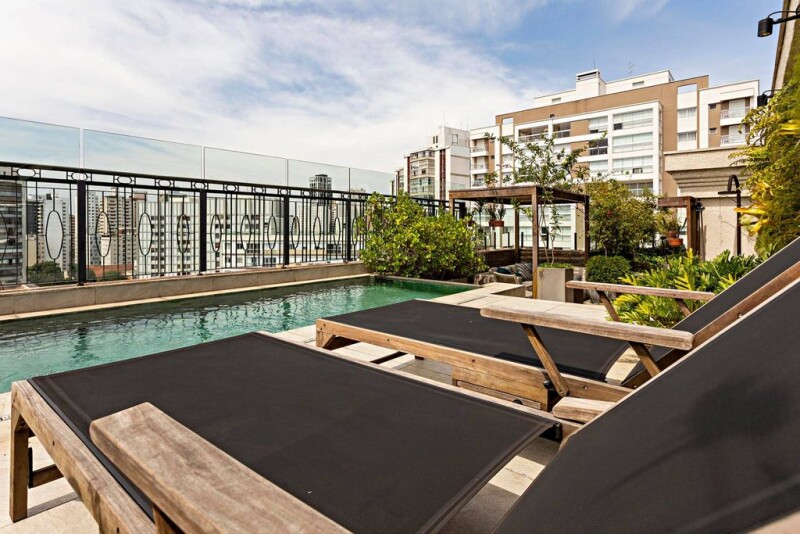 Penthouse designed by João Armentano with landscaping by Gilberto Elkis. The first floor features a private area with two suites, a living room with a gas fireplace, a dining room with an integrated terrace, a climate-controlled wine cellar for 120 bottles, a powder room, a kitchen, and a service area. The upper floor includes a suite currently used as an office, a home theater, a gourmet area with a cooktop and barbecue, and an outdoor space with a pool. The property is equipped with automated sound, lighting, and blinds. The building offers amenities such as a party room, pool, sauna, gym, sports court, and playroom.