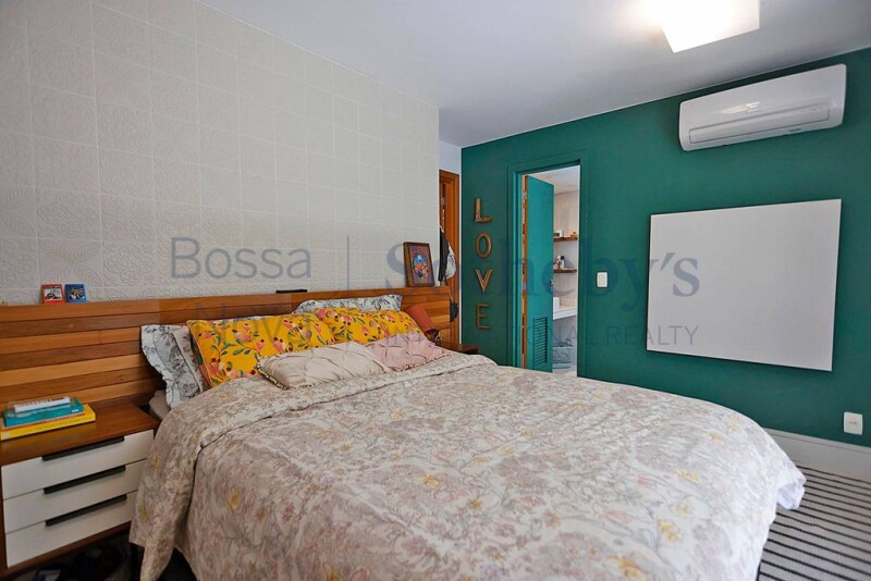 The apartment has a large balcony, closed with a glass curtain. It is distributed in a room with three environments: living, dining and TV, lavatory and guest bathroom. In the intimate area, it has three bedrooms, one of which is a suite with a closet. All rooms with closets and split air conditioning. The floor of the entire apartment is made of porcelain tiles. Pantry and kitchen, service area and staff dependence.