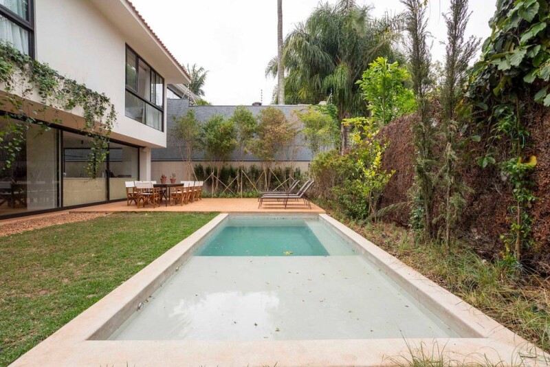 This new contemporary-style house is located on a prime street in Jardim Guedala. The bold design features a living room with a fireplace, a dining room, a powder room, a breakfast room, and a kitchen, along with a family room with a fireplace, a fully equipped gourmet kitchen, and a playroom. The exterior boasts a large garden with a pool and a solarium. The private area includes three en-suite bedrooms, one of which is a master suite with a walk-in closet, and an additional room that can be used as an office. The bathrooms are spacious and airy, and all cabinetry is of high quality. There is also a garage for up to four cars, a ventilated service area, and staff quarters. The house is equipped with solar panels, a complete security system, and a secured private area.