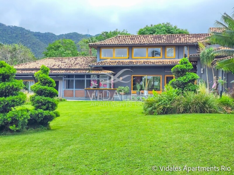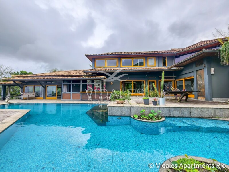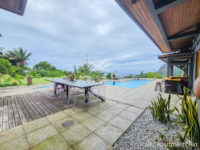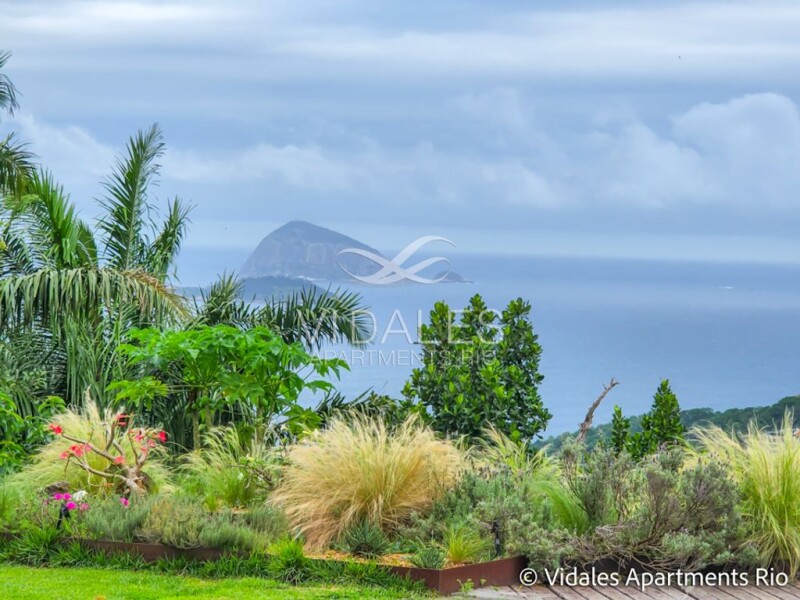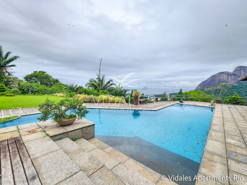 Beautiful house in the most exclusive condominium in Rio de Janeiro, located in one of the most sophisticated neighborhoods in the Marvelous City. Wonderful location, 10 minutes from Leblon Beach and Ipanema. Total privacy, with excellent armed security. A mansion in the middle of nature. Fascinating view of the sea, Pedra da Gávea, mountains and islands. Very pleasant, unique location. Exclusive design with beautiful architecture and a very versatile floor plan. Built area of 1095 mts on a flat plot of 2800 mts. It comprises a beautiful marble entrance hall, a beautiful lounge with floor-to-ceiling windows, beautiful lounge, great dining room, TV room with access to the three suites all with dressing rooms and balconies with views of the Atlantic forest. On the second floor there are two beautiful suites, one of which is a master suite of 100 meters with a bathroom with sauna and dressing room as well as a great balcony. The outside area is spectacular, with a good swimming pool and incredible views of the sea, Dois Irmãos hill and the Cagarras islands, barbecue and wood-burning oven. Excellent spring water reservoir. There is also a bar and a bagalô, and another lounge. There is also a staff house with two bedrooms, a living room, bathroom and kitchen. Parking for eight cars.