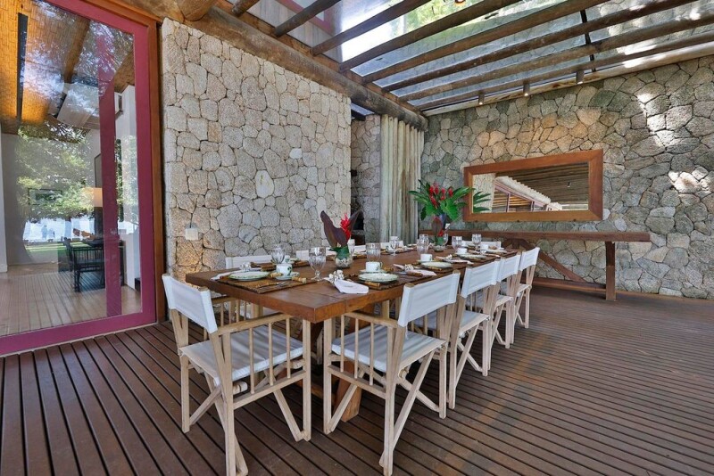 House in a gated community that provides total privacy, surrounded by stunning views of the sea, with a private beach and a helipad. The main house has a contemporary architectural style, featuring three large bedrooms with en-suite bathrooms and a master bedroom with sea views, closet, bathroom with whirlpool bath, double vanity and double shower. On the ground floor there is a living room with a fireplace and a dining room, as well as the outdoor area, which has a garden and a private beach. There is also a TV and games room, a kitchen with custom cabinets, full employee facilities and a laundry room. The guest house, which is separate from the main house, consists of two more bedrooms, a family room and a kitchenette. There is also a caretaker's house with two bedrooms, bathroom and open-plan kitchen, and a bedroom for the driver. The water supply is provided by a spring, with a 30 thousand liter water tank; the water is heated using a gas boiler. The entire living area and bedrooms in the main house have air conditioning.