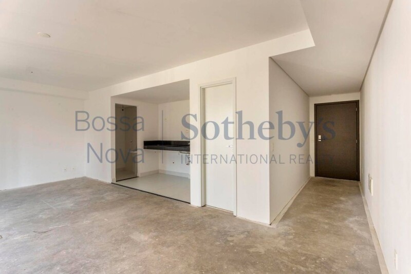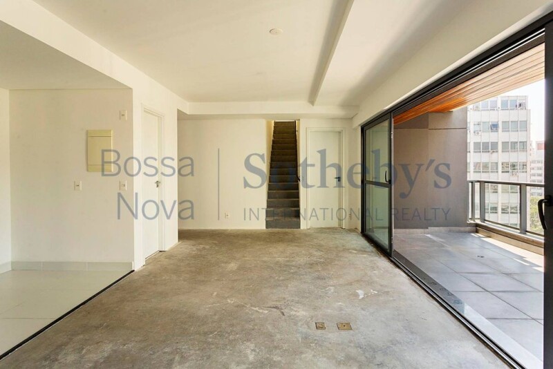 Brand-new duplex apartment with no floorings, only the concrete subflooring, in an apartment building located in a prime São Paulo neighborhood. On the first level there is a living area that comprises two living rooms, a balcony and an open-plan kitchen. The second level comprises two bedrooms, both with en-suite bathrooms and balconies. The apartment also has full air conditioning structure in all rooms. The building offers three parking spaces in the garage, 24-hour concierge services and leisure facilities that include a heated swimming pool, a game room, a party hall and a gym.