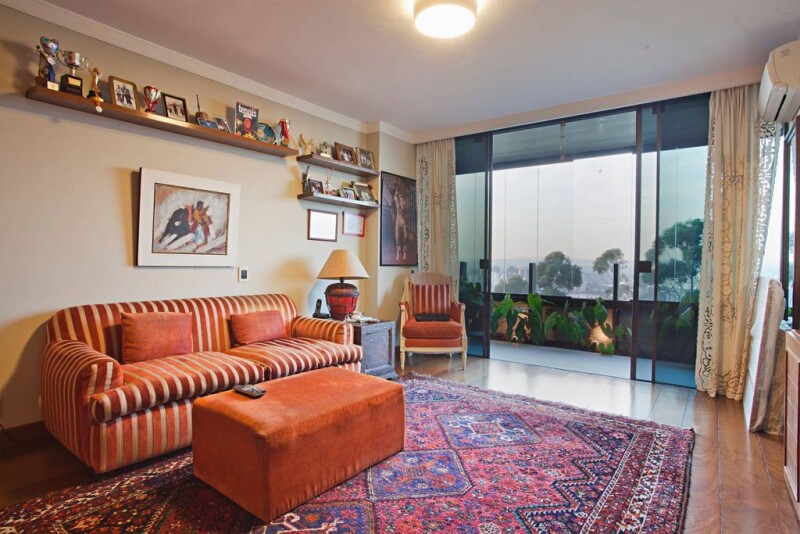 Upscale apartment with wide ambiances, living to multiple social areas, a big terrace with retractile glass cover and a magnificent view of the city. The property also holds a dinning and a lunch room, an office and three suites with private terraces, with the master suite having a closet. The building offers gardens, a pool, a playground and full time security.