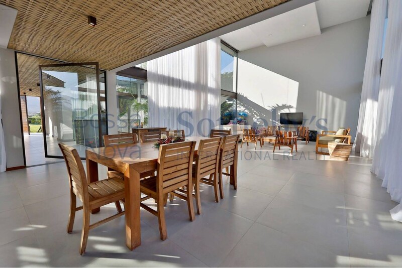 House with a contemporary architecture style in the gated community of Portobello, facing a navigable canal that flows into the sea. With wide, comfortable and sunlit spaces, the apartment comprises a three-room living area with double ceilings, a kitchen with an island and plenty of cabinets, a terrace space with a gourmet area and a barbecue grill, a swimming pool with a hot tub, and a garden full of fruit trees. In the sleeping area there are five bedrooms, all with en-suite bathrooms, one of which has a balcony, a closet and a double vanity in the bathroom; all the other bedrooms overlook the garden and have a mezzanine space. The gated community has a tennis and a soccer court, a helipad, an airport, a vegetable garden and hiking trails, as well as 24-hour security.