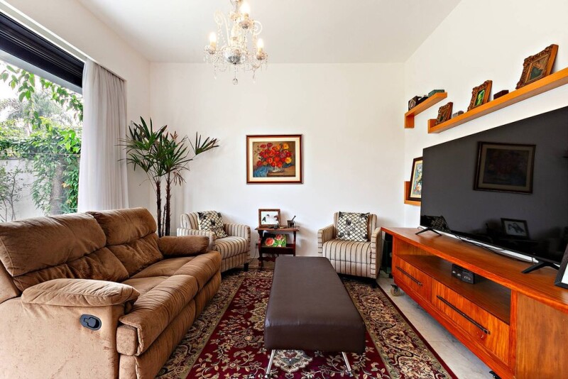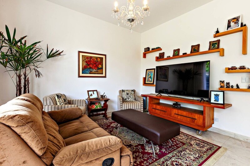 This uniquely styled, renovated house is located on one of the best streets in Jardim Paulista, near Ibirapuera Park. The upper floor features three spacious suites, all with walk-in closets and large windows that provide excellent light and a special view of the tree canopy. The flooring is made of peroba rosa wood. The ground floor includes a living room, a powder room, a dining room, a family room, and a kitchen with floor-to-ceiling sliding doors that open to the barbecue area and garden, seamlessly integrating all spaces. The kitchen features an island and a countertop for quick meals, all in porcelain, and is filled with cabinets. The service area and other facilities are also well-appointed. The property includes a garage with space for three cars and a solar heating system.