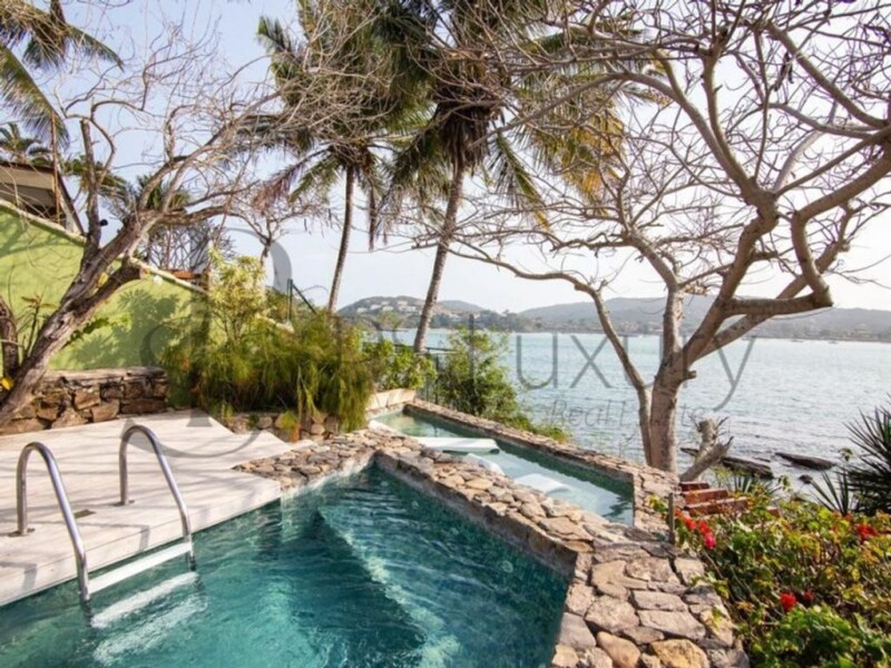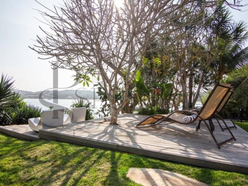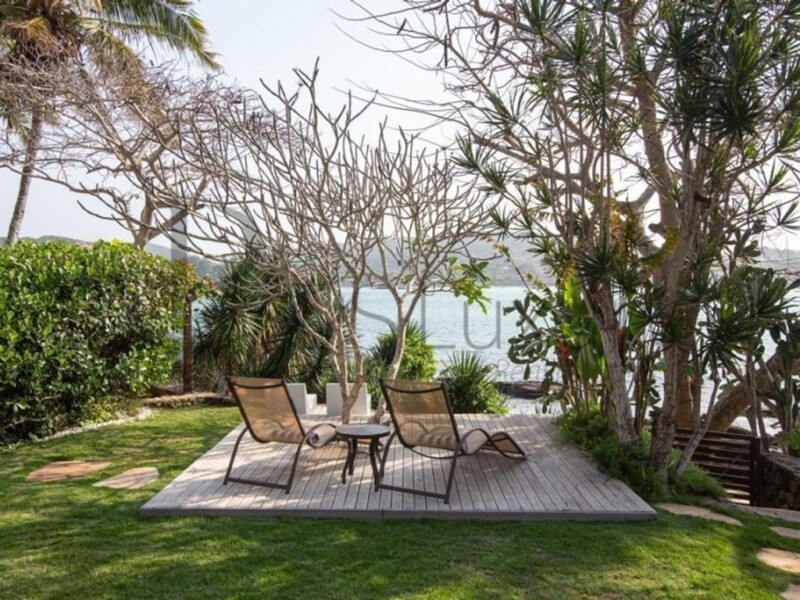 Praia da Ferradura - Stunning mansion with direct access to a small private beach. Fully renovated, the property is being sold semi-furnished. The residence consists of 7 spacious suites (two of which are double and can be converted into two additional bedrooms) and a master suite equipped with a queen-size bed, a whirlpool bathtub, a walk-in closet, a home theater, and an office with two work desks. Additionally, it features a two-room living area with a sea view, a beautiful indoor garden, 2 fully equipped kitchens, a laundry room, a heated whirlpool jacuzzi with sea views and capacity for 12 people, as well as a relaxation pond next to the jacuzzi, and much more. The interior and balcony finishes are entirely made of beige Italian Pietra stone. The house has a security system, including a closed-circuit monitoring system and infrared technology. It offers 454 m² of built area, set within a 1,278 m² plot.