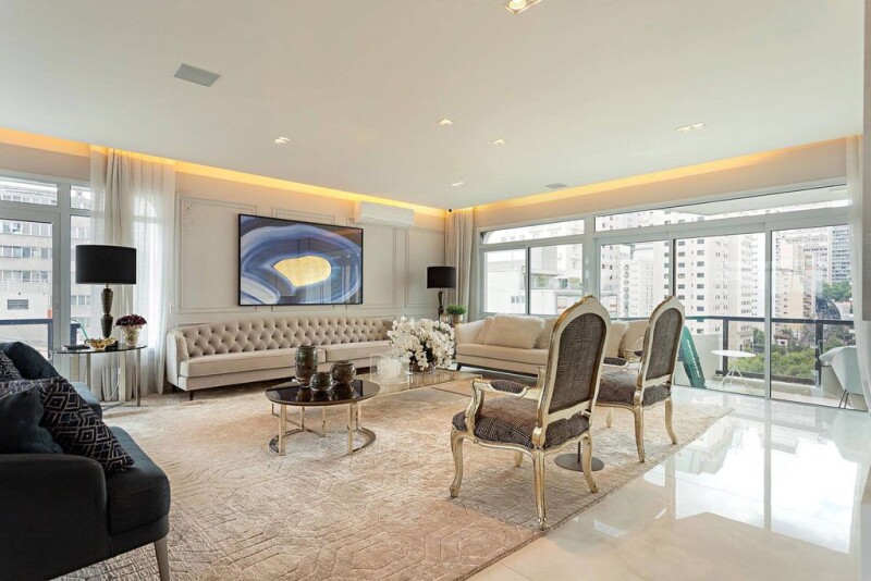 Completely renovated high-end apartment in Jardim América, full of top-notch details and finishes. The living area has generous and bright spaces with sitting and dining rooms, surrounded by large windows that face a privileged view of the neighborhood. There is also a TV room, a breakfast nook and a kitchen. In the sleeping area there are three bedrooms, one of which has a closet. The building offers 24-hour security, generator, party hall and garden area, in addition to offering four parking spaces in the garage.