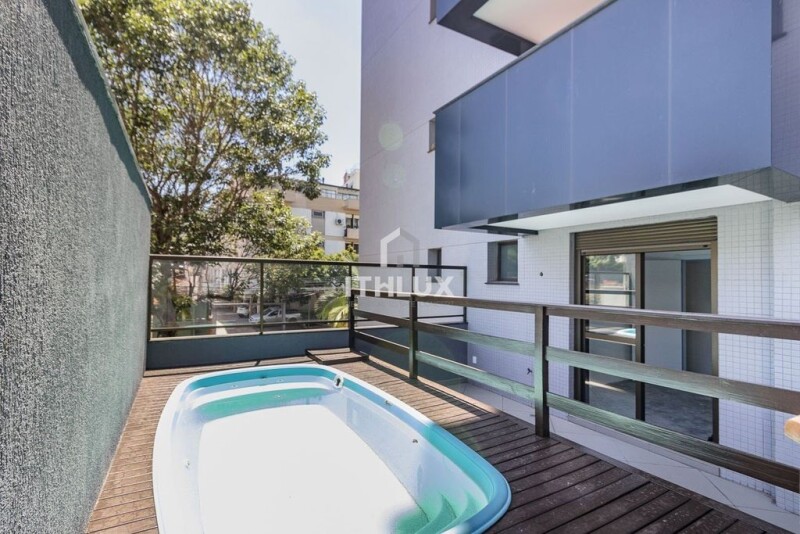 GARDEN apartment of 169.23 m2 with 3 bedrooms, 1 suite, all with motorized blinds, living room for 3 or 4 environments, barbecue, toilet, kitchen and service area. Front apartment, very sunny (east and north). It has a side patio with a deck and swimming pool already installed. The size of the living room is different in this apartment. Building without infrastructure, with low condominium cost. Condo fee: R$700,00 IPTU (tax): R$1600,00 For more details and visits, please contact Cintia Bulgari. Accepts FGTS and Financing. CRECI/SP Nº 041632-J CRECI/RS No. 59970-F.