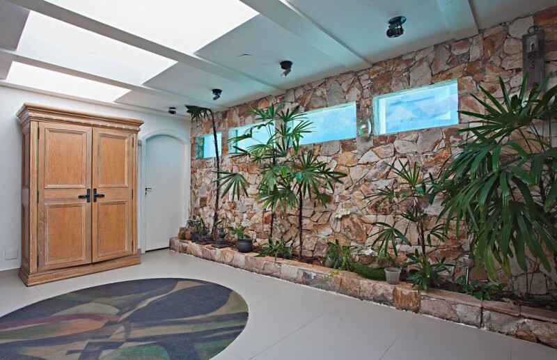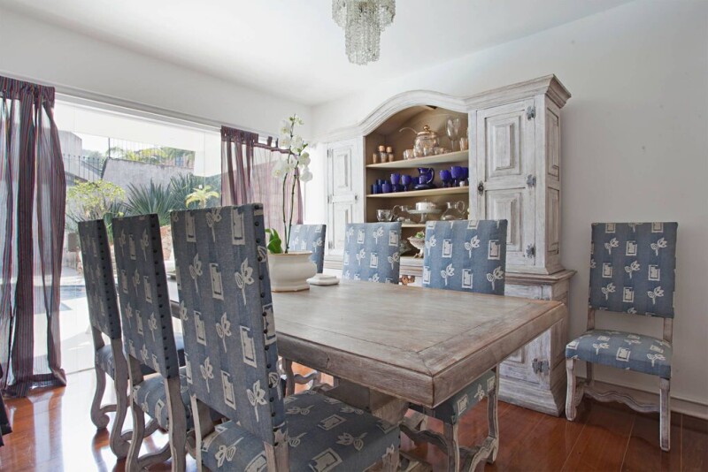 This house has a great leisure area with a pool, a spacious living with a fireplace, a dining room, a home theater, a kitchen with an island, a storeroom, a service area and a staff quarter. The intimate area has four bedrooms, two of them being suites, and there are five parking spaces.