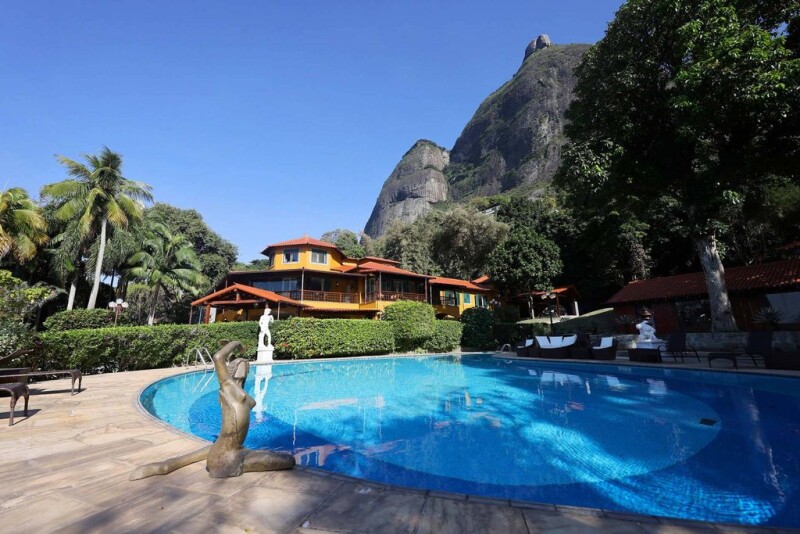 This house is situated on a 75,347 square feet plot within a condominium, surrounded by lush vegetation and offering views of the ocean and Pedra da Gávea. The property combines unique features with a prime location. The main house is spacious, with the first floor comprising several living rooms, a library, a dining room, a breakfast room, a powder room, a kitchen with a pantry, a laundry room, and staff quarters. The second floor features a cozy sitting room with a balcony overlooking the sea and four suites, including the master suite with a walk-in closet. The third floor hosts another suite with ocean views. The property is enhanced by extensive gardens, a koi pond, an orchid greenhouse, a pool, a gourmet area with support bathrooms, a sauna, and an independent staff apartment with four bedrooms. Additional features include a kennel, a power generator, a new elevator, and a complete electrical and plumbing renovation. The property offers six covered parking spaces and 14 uncovered spaces.