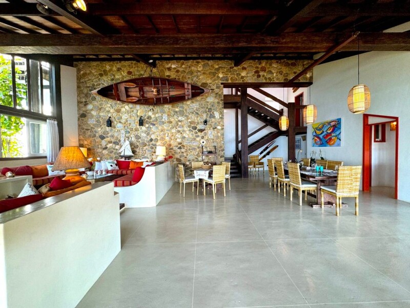 A paradise with 88m of seafront located on Gipóia Island. Privacy and beautiful views make this beach house a unique property. The house has a deck for docking large boats. A ramp for boarding boats up to 25 feet and a buoy. Harmony is present throughout. The construction was designed to integrate the residence with the surrounding nature, especially the sea. There are 6 bedrooms. The master suite has a closet and a balcony with a sea view, the other 5 bedrooms have a double bed and a mezzanine. On the ground floor there is a large living room divided into 2 areas (living and dining), a toilet, a large balcony, a kitchen, a laundry room, a maid's quarters and 2 guest rooms. The outdoor area has a beautiful garden with a barbecue and a caretaker's house.