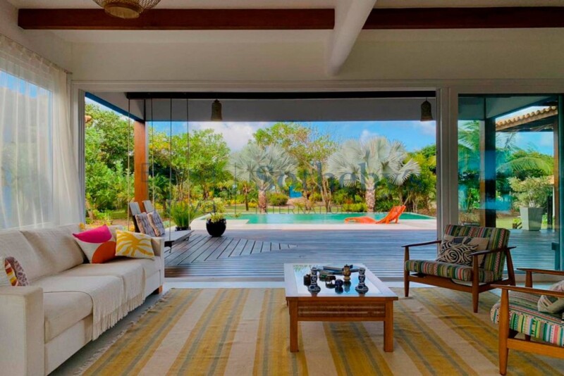 Located on the Maraú Peninsula. The house has dining, living and TV rooms, kitchen with eating and cooking area, toilet and balconies in the front and in the bedrooms. Also on the first floor there are two suites, one with a double bed and the other with three single beds. The outside area has a swimming pool and barbecue grill. On the upper floor is the master bedroom, with two closets, two bathrooms, and a veranda facing the sea. It has Cumaru hardwood floors, and Ipê doors, frames, door jambs, and ceilings. Natural ventilation opens to the entire garden, created and planned by a landscape designer using local plants from the Atlantic Forest and inserting others adapted to the region. It is considered one of the most beautiful houses in the Maraú Peninsula. It has air-conditioning in the bedrooms, refrigerator, freezer, microwave oven, dishwasher, television with Sky signal, and solar energy for water.