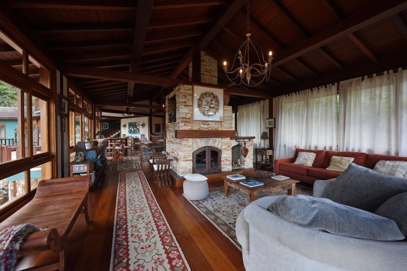 Located in a gated community of just five houses, close to local shops and in a reputable neighborhood, this house has three floors. On the lower floor there is a living room, bar, home theater, half bath and outdoor area with lap and infinity pool, as well as sauna, shower and barbecue grill. The first floor features a two-room living area with double height ceilings, a fireplace, a dining room, three bedrooms, a kitchen and a laundry area. The second floor consists of the master bedroom with a balcony and a privileged view of the mountain valley.