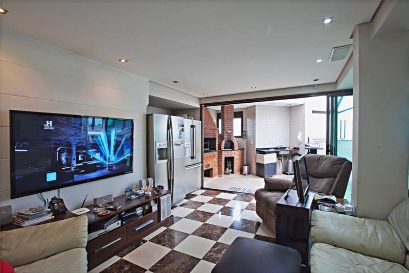 This penthouse is at an isolated building, has plenty of sun light and a dazzling view to the São Paulo skyline. Its social area has a living room, a TV room, a dining room and another ambiance with a table, besides the gorgeous balcony. The intimate area has four suites and the rooftop holds a gourmet space with a barbecue pit, a pool and a social room with a TV.