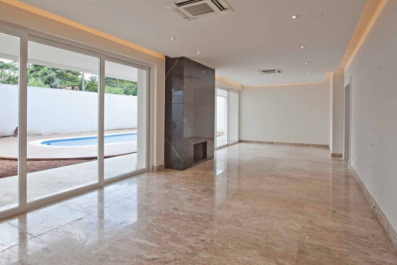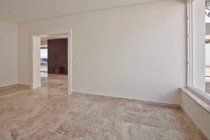 This contemporary project by Raul di Pace features a living room designed for multiple environments, seamlessly integrated with the dining room and garden, which includes a pool and gourmet space. The private area offers a lounge and four en-suite bedrooms, with the master suite boasting two bathrooms and a large walk-in closet. The property will be delivered with a fully equipped home cinema featuring eight VIP-style seats and a home theater system, a gourmet kitchen and an industrial kitchen, a fully equipped laundry room, and a climate-controlled wine cellar.