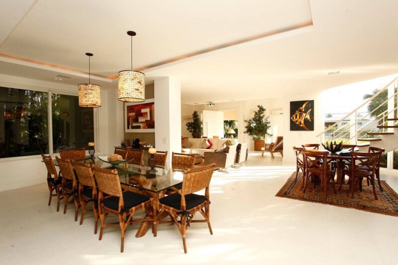 Located in one of the most comprehensive condominiums in Costa Verde, this canal-front house features a double-height living room with two areas, a fireplace, and a dining room with a table for ten. It includes a powder room and a kitchen with a central island, equipped with Roma cabinetry. The private area offers six suites with built-in wardrobes and split air conditioning, including the master suite with a walk-in closet and a bathroom featuring dual sinks and a jacuzzi. The mezzanine provides a cozy space with sofas, a TV, and air conditioning. The gourmet area includes a marble countertop, electric grill, stove burner, barbecue, and pizza oven. The outdoor area features a games room equipped with a pool table and foosball, a glass-enclosed dry sauna, a full bathroom, a pool, a heated spa, and a grass field for volleyball or soccer. Landscaping was designed by Landscape (Rio) and includes Rain Bird automatic irrigation. The property offers a floating deck for boat docking, an electric winch for jet skis, and a boat lift accommodating vessels up to 42 feet and 10 tons. Equipped with a 75 kVA diesel generator. Sold fully furnished.