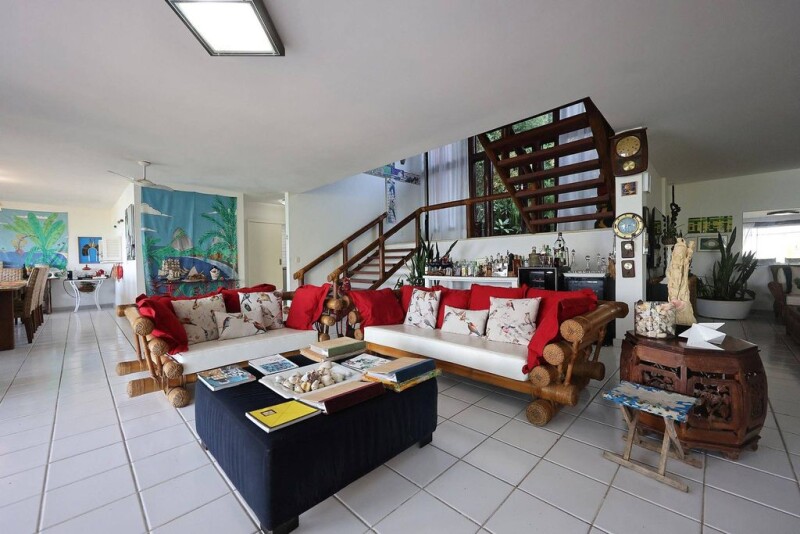 This triplex house in a gated community near Bracuí offers security, beachfront access, and a private beach. On the ground floor, the house features a living room with two areas, a dining room, game room, kitchen, and full maid’s quarters. The living room opens to a veranda with a stunning view. On the upper floor, the intimate area consists of a master suite with a walk-in closet, a spacious bathroom, and a breathtaking sea view, along with four additional suites, three of which also offer sea views. The leisure area includes a gourmet veranda with a barbecue, a gym, a steam sauna, a powder room, a garden, a swimming pool, a deck lounge, a helipad, and private beach access.