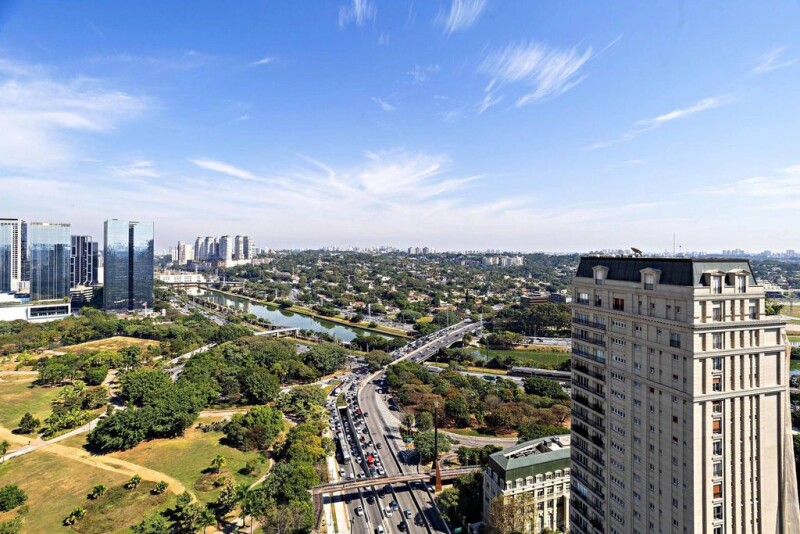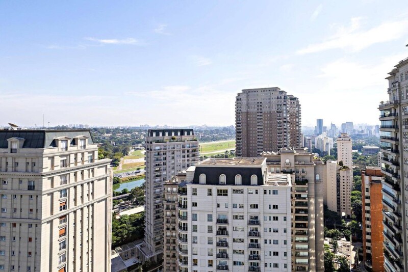 Located in one of São Paulo's most prestigious areas, just 75 meters from Parque do Povo and close to Clube Pinheiros, this apartment boasts spacious, bright rooms filled with natural light. The living area accommodates multiple settings, with a dining room and home theater adjoining a large terrace that offers skyline views of São Paulo. There is also a breakfast room, a guest restroom, and a kitchen. The private area includes four suites, with the master suite featuring his and hers bathrooms and walk-in closets. The condominium offers complete amenities, including a state-of-the-art gym, pilates room, 25-meter heated lap pool, playroom, spa, saunas, and beach tennis and tennis courts. The building provides 24-hour specialized security and a bulletproof entrance. Landscaping by Orsini enhances the elegance of the common areas.