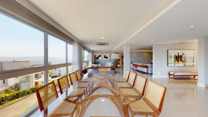 Mansion at St Barth Condominium The Cacupé neighborhood is known for being one of the most upscale and peaceful areas in Florianópolis. Located about 15 minutes from the city center, it boasts a beautiful view of the sea and is surrounded by lush nature. It is in this setting that the luxury residential nautical condominium, St Barth, is situated, the most exclusive in the neighborhood. With only 18 high-end houses, fully integrated into the local topography and with environmental quality, the condominium is ideal for those seeking privacy, exclusivity, and security. Among the attractions of the condominium, the Private Nautical Club stands out, which has a fixed and floating pier for boats up to 50 feet, as well as a support center with individual lockers and men's and women's changing rooms. The gourmet space has a kitchen with a semi-industrial stove and two refrigerators, while the leisure area has a landscaping project and space for a grill. Each owner can also choose a numbered "mooring" away from the pier for another vessel (farther away, deeper draft; up to 70 feet). The Helipad with strobe signaling and support for 7 tons of thrust is another differential of the condominium. And it is within this exclusive condominium that the Sunset house is located. Designed by renowned architect Ricardo Barros, the house has 1,228 m² of built-up area and is fully integrated with nature, offering one of the most beautiful views of the sea in Florianópolis. The plot has 1,700 m². With a panoramic view of the sea from all environments, the house has 04 suites, 01 of which is a master suite with an external hot tub. The social area is distributed on 2 floors and offers several options for the occupants. On the level of the entrance hall, we find an office and a spacious living room with 03 environments, dining room, living room, and television. The furnished gourmet space is integrated with the heated infinity pool area and the deck facing the sea. The kitchen was designed by the renowned Evviva company and has a pantry. The laundry area and dependence that accommodates up to 2 employees and is well isolated from the rest of the house. One level below are the game room, home theater, weight training, sauna, and another multipurpose room. These are some of the features that add even more comfort and sophistication to the property. In addition, the house has solar heating, power generator, and 04 parking spaces. Don't miss the opportunity to live in one of the most incredible houses in Florianópolis, in one of the most upscale and exclusive neighborhoods in the city. Take the Virtual Tour and come to see this true jewel of the Santa Catarina coast!.