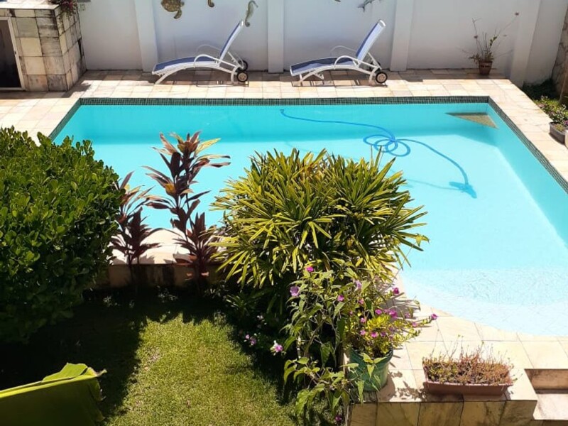 For offer is an upscale and spacious villa with 2 floors: 1st floor: 2 service rooms with toilets, garage and two toilets in common use, large living room, completely equipped gourmet area, barbecue, swimming pool, back and side garden. 2nd floor: 2 suites, 2 standard bedrooms, 1 social bathroom, circulation area, kitchen, service area, living room, dining room, Semi-furnished house. Varanda in L-shape, Frontal Garden, Electronic gates. IPTU: 2.281,00 Total Land area: 562,50 m2 Constructed area: 350m2 It is located close to the best beaches in Salvador da Bahia, Itapuã. All documentation in order, including the escritura publica (deed) and the public register (RGI). The sales price represents a basis of negotiation. We can provide a more detailed description on request. Also, visits of the property can be scheduled at any time.