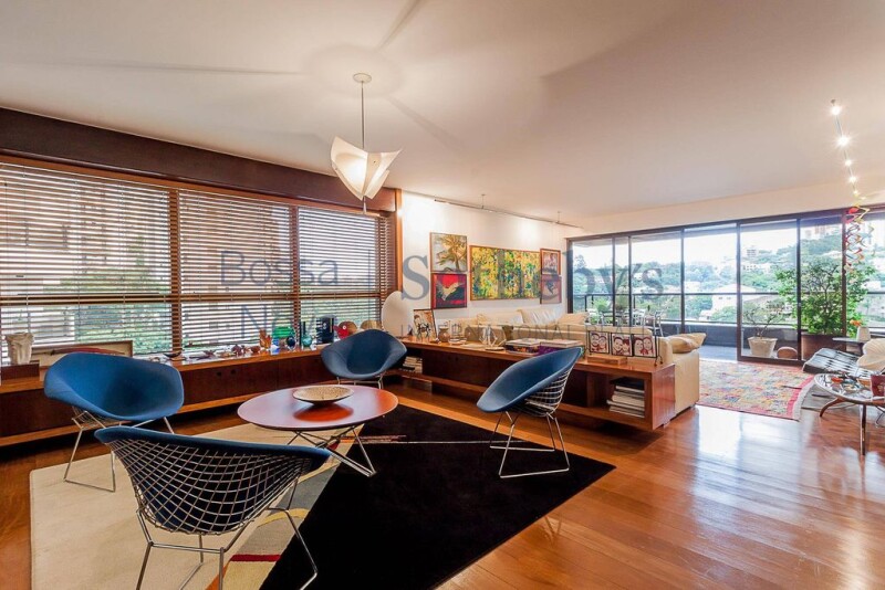 Located in a region surrounded by the most renowned shops, the apartment is designed by the architect Roberto Kubota and consists of a living room for three environements, a toilet, a kitchen and service area. In the intimate area, it has four large suites and an office. Building with party room, heated pool, gym, multisport court, garden and games room.